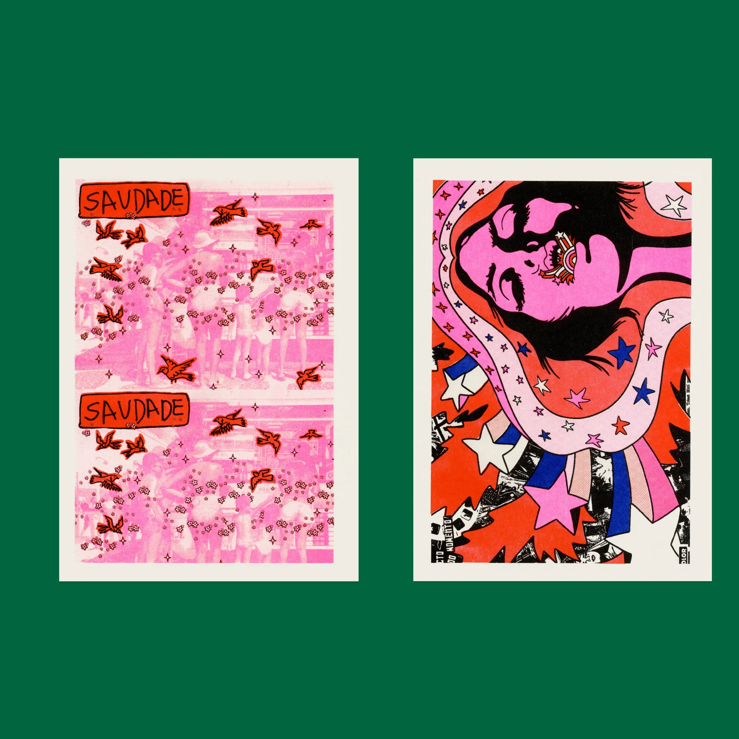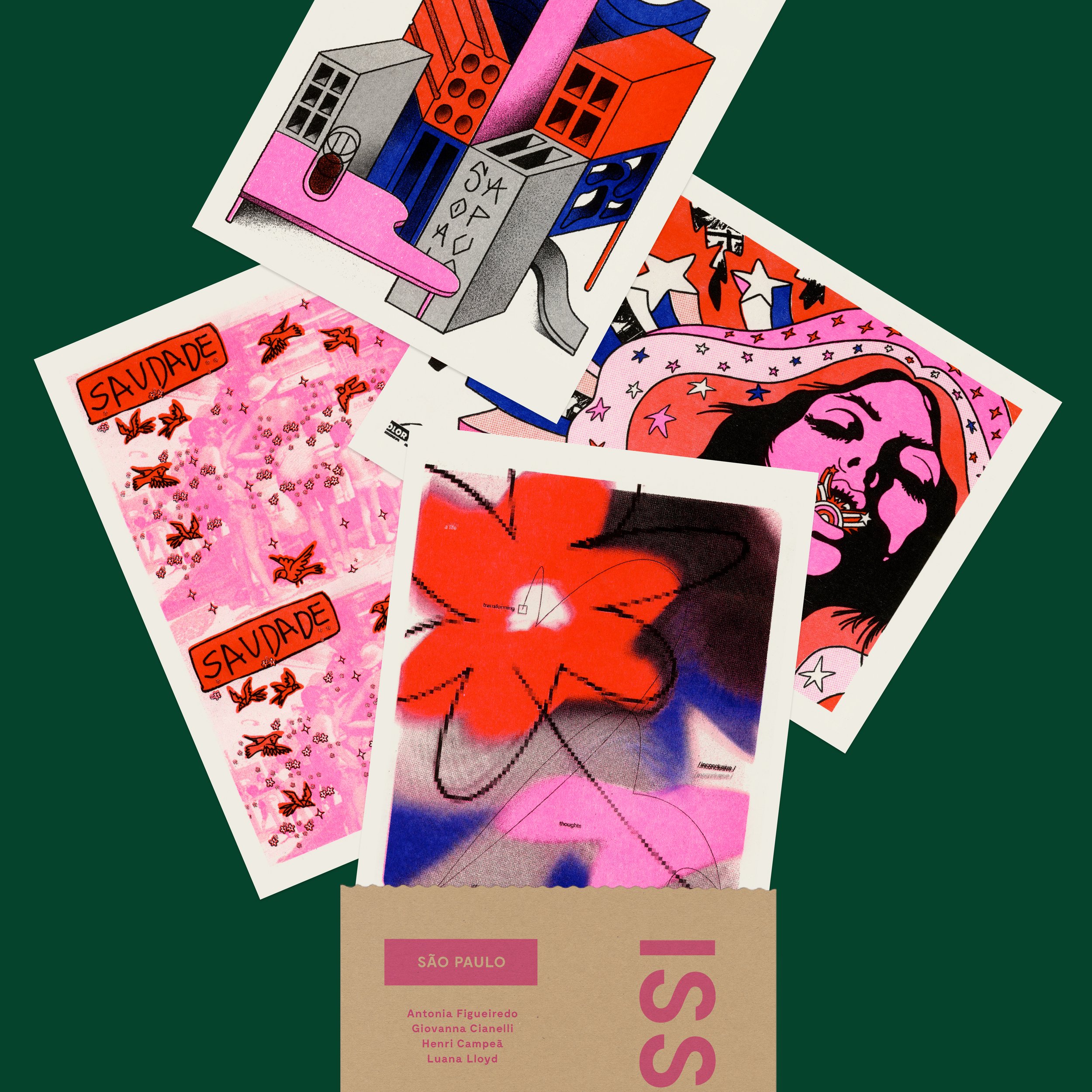 Risotto is a riso print & design studio. Every month, Risotto invites artists to create a card collection with three of their artist friends from their hometown or current city of residence. Antonia invited three friends from Sao Paolo: Giovanna Cianelli, Henri Campeã, and Luana Lloyd.